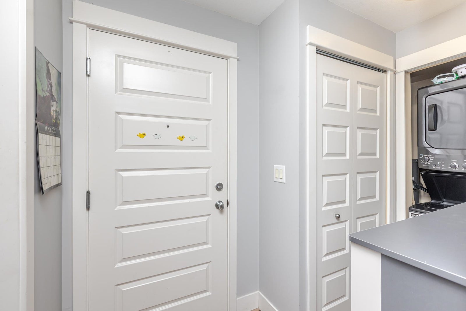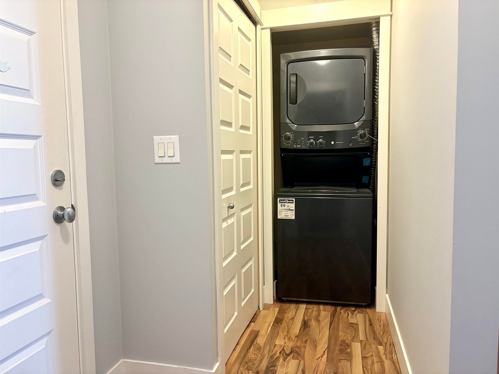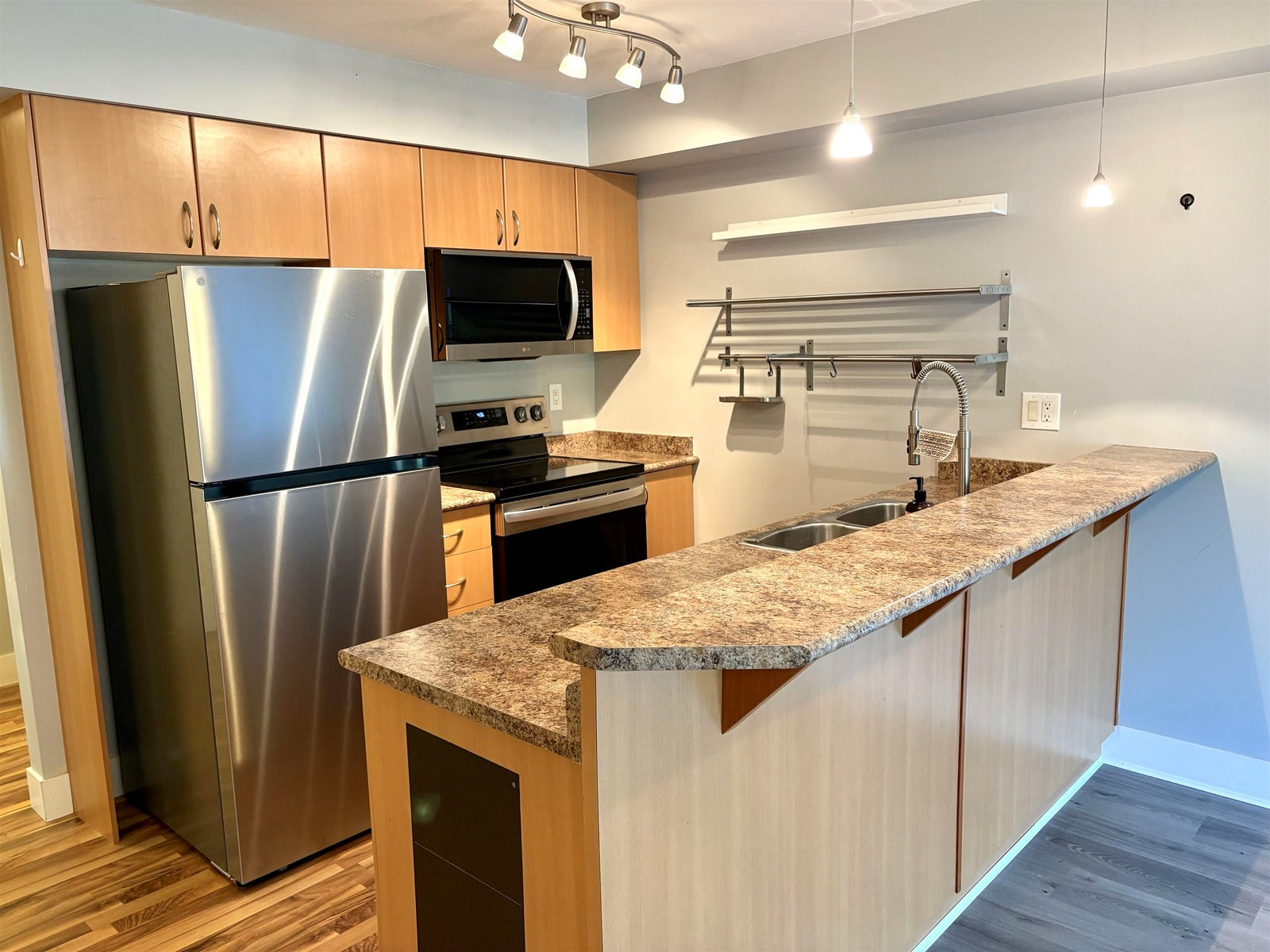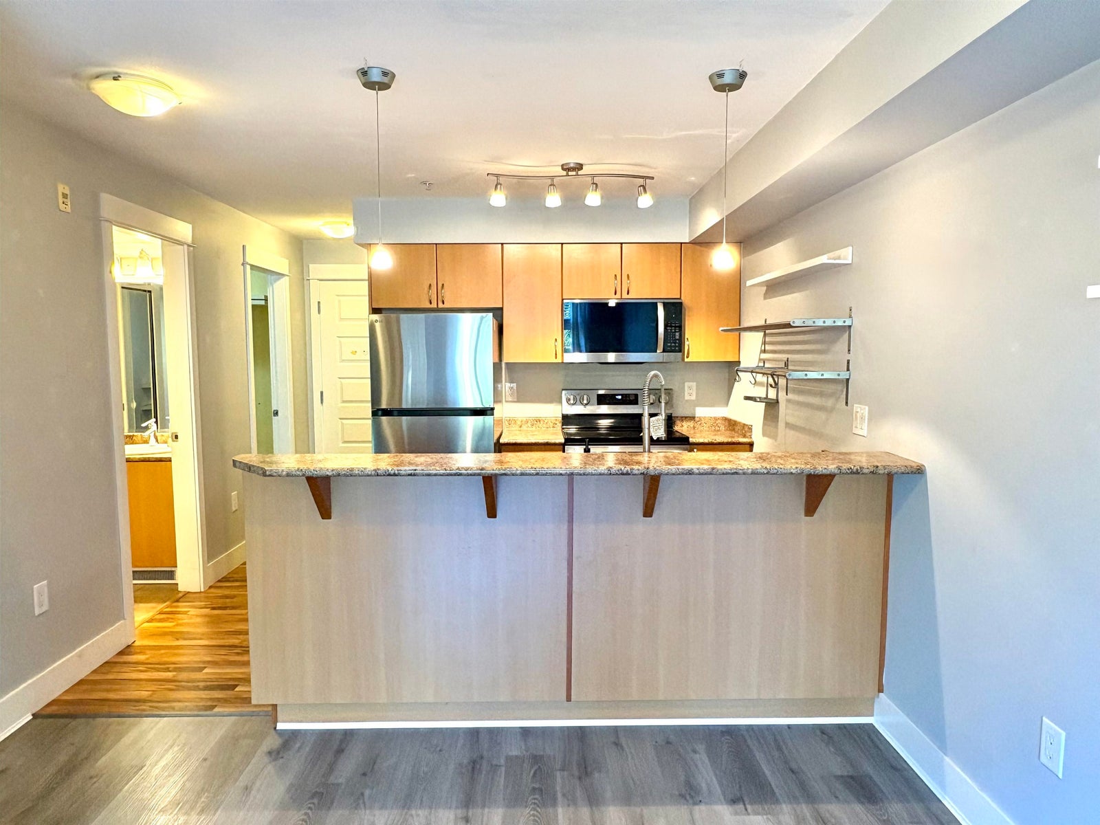 Modern ground floor 1-bedroom and den unit in east Abbotsford offering an open concept, 626 Sq Ft floorplan ready for its new owner! Freshly painted, with All NEW Stainless steel appliances, and NEW flooring through living room and bedroom. All this under assessed value! Flexible Den space can be used as an office or storage. Comes with a RARE EXTRA parking space right in front. Super convenient for guests or when you want to bring your groceries right on in through your patio door. Complete with a second underground parking space and storage locker! This unit offers peak convenience and comfort in a great location, within walking distance to Historic Downtown Abbotsford, parks, public transit, shopping, schools, and a short drive to UFV. Call today and don't miss out!